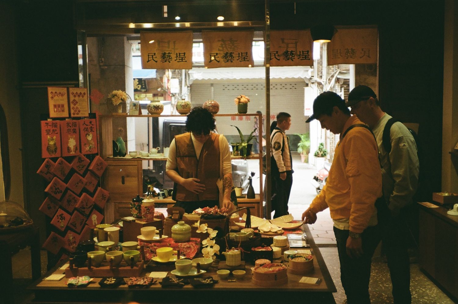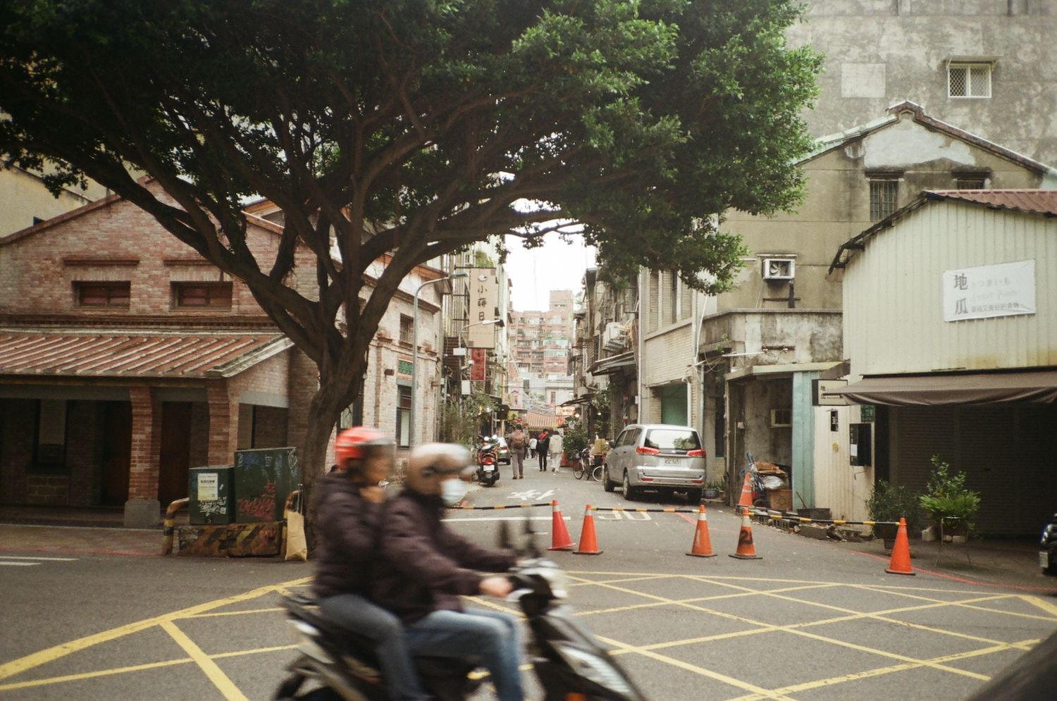 A neighborhood in the Zhongshan district lined with old-looking buildings fittingly housing vintage and ceramic stores.