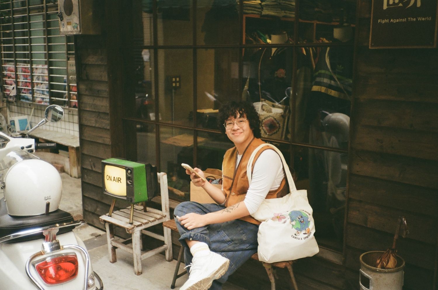 We met the sweetest shopkeeper, 邱子, who mans this vintage clothing store that reconstructs old denim garments into bags and vests.