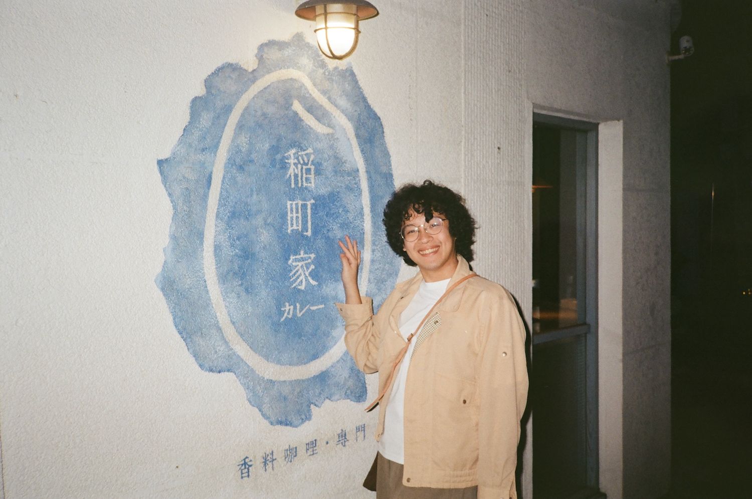 A photo of Bobby in front of a curry house after getting our tummies filled with one of the best curries we have had.